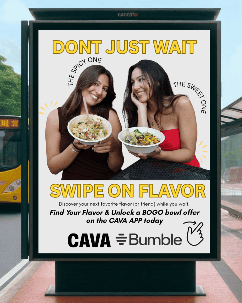 From now through December 31, Bumble users can unlock exclusive CAVA offers right in the app — like Buy One Bowl, Share One Free rewards that make meeting up IRL easier (and tastier) than ever. Whether it’s a first date, a friend date, or a casual “let’s grab lunch,” we’ve got your table covered.